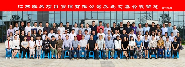 2017年10月10日上午8点58分,江苏春为项目管理有限公司举行了新办公楼乔迁仪式,公司全体员工合影留念,并特邀嘉宾参观新办公楼。