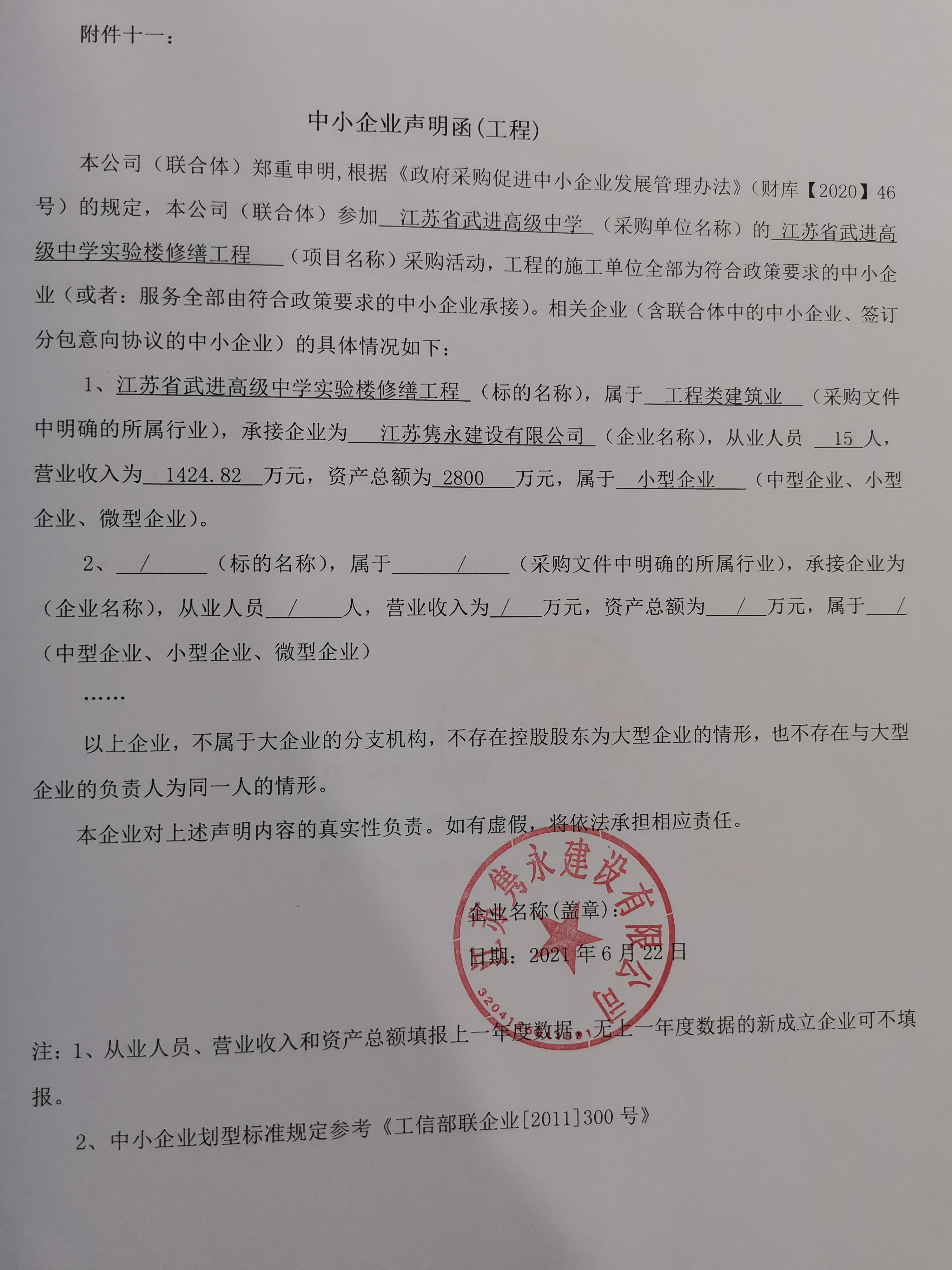 供应商名称:江苏隽永建设有限公司