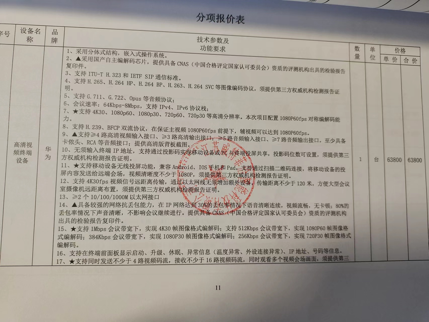 名 称:常州幼儿师范高等专科学校视频会议系统采购项目 品 牌:华为 规格型号:详见响应文件 数 量:1批 总 价:人民币捌万玖仟元(小写:¥89000元) |